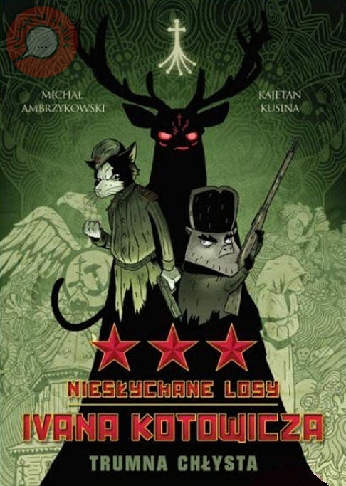 W POGONI ZA STALINIUM Niesłychane losy Ivana Kotowicza okazały się bardzo pozytywnym zaskoczeniem. Oczywiście w moje ręce nie trafiła żadna wybitna pozycja, która poruszyłaby mnie intelektualnie i skłoniła do głębszej zadumy, ale autorom udało się zrealizować cel, jaki przed sobą postawili. Stworzyli bowiem dobrą, klimatyczną opowieść rozrywkową, która jednocześnie nie obrażała inteligencji czytelnika. Dlatego na trzeci – i docelowo ostatni, ale czy tak jest w rzeczywistości, pozostawię do odkrycia Wam – tom czekałem bardziej niż na jego poprzednika. I chociaż nie wszystko wyszło tak idealnie, jakbym sobie tego życzył, warto było sięgnąć po ten album i jeszcze raz wejść do tego pokręconego świata rodem z wierd fiction. Po wydarzeniach w siedzibie Rybiej Dynastii, profesor Bremer nie tylko kontynuuje swoje badania nad Ivanem Kotowiczem i stara się zgłębić historię obecności Stalinium w tej części świata, ale także próbuje ustalić, co właściwie stało się w zamku. Jego działania wydają się nasilać tajemnicze wizje prześladujące „chłopaka”, ale jednocześnie coraz bardziej przybliżają go do zrozumienia całej sytuacji. Wciąż jednak na wiele pytań nie ma odpowiedzi, a wszystko z upływem czasu komplikuje się coraz bardziej. Gdy w okolicy ludzie wpadają w taki sam szał, w jaki wpadali w innych wioskach, bohaterowie znów muszą ruszyć w drogę. Tym razem jednak ich celem jest miejsce bardzo odległe, ale bliskie Ivanowi – jego rodzinna wieś. To tam bowiem wiodą tropy Stalinium, ale na miejscu na Kotowicza czeka o wiele więcej, niż mógłby sądzić. Tajemnice z przeszłości i chęć zemsty mieszają się ze sobą w nierozerwalnym tańcu. Jaką jednak rolę w nadchodzących wydarzeniach odegra Świnojew? Po czyjej właściwie jest stronie? I co jeszcze szykuje los dla niego, Kotowicza i ich towarzyszy? Największą siłą Kotowicza nie jest oryginalność, bo ileż to już mieliśmy opowieści z gatunku retrofantastyki, podobnie jak z gadającymi zwierzętami, a całość oparta jest na znanych i sprawdzonych już schematach. Nie jest nią też sama treść, dość prosta, pozbawiona głębi i ambicji aspirowania do czegoś ponad tylko udaną rozrywkę. Jest za to znakomita szata graficzna, inspirowana pracami Mike’a Mignoli i innych grafików, wyrosłych na rozsławionym przez niego gruncie oraz świetny klimat, będący wypadkową zarówno ilustracji, koloru, jak i pewnych zagrań fabularnych. I to należy docenić, tym bardziej, że niewiele jest podobnych dzieł na naszym rynku. Tajemnice, niezwykłe wydarzenia i szybka akcja sprawiają, że czytelnik szybko wsiąka w tę opowieść i daje się porwać jej nurtowi. Nie ma tu miejsca na nudę, nie ma też zbytniego rozwlekania. Jest za to ciekawie poprowadzona opowieść zaludniona dość prostymi, sympatycznymi lub antypatycznymi, bohaterami, których się zapamiętuje. Szkoda tylko, że albumy z tej serii nie ukazywały się częściej, bo zasiadanie do lektury po dłuższej przerwie za każdym razem stanowi pewien problem – część wątków się zapomniała, coś tam uciekło, to znów wydaje się innym, niż być powinno. Ale to przecież nie wina samego komiksu, a zasiąść do niego można z jednoczesną lekturą poprzednich części, prawda? Warto poznać całość. Czy to już wreszcie koniec, czy seria jeszcze potrwa, zdradzał Wam nie będę, ale za to z czystym sercem polecam się z nią zapoznać. Ma swoje drobne minusy, ale jak na pozycję stricte rozrywkową i opartą na popularnych motywach, sprawdza się naprawdę znakomicie.