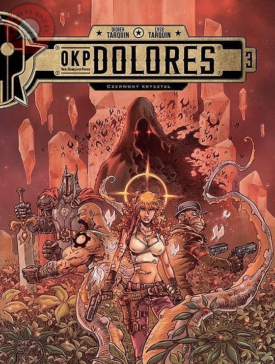 Statek Mony, OKP Dolores, poszukuje tzw. czerwonego kryształu, związanego z legendą o mieczu Telassiego. Dotknięcie kryształu wiązało się z władzą, ale i poważnymi zaburzeniami psychicznymi. Osobą, która obecnie sprawuje wręcz boską, w swoim mniemaniu, władzę z pomocą kryształu jest generał McMoore. Siedzi gdzieś zabarykadowany za przegrodą, w raju zbudowanym dookoła kryształu. Generał miał być nieśmiertelny, jednak nic nie dawało spowolnić jego starości ani odepchnąć śmiertelność. Problemem dodatkowym jest jeszcze to, że odczuwa on głód boga Rassetów, co wiąże się on z ludożerstwem. Ale także to, że rada rasseckich czarowników sprzedała mu informację, że tylko spożycie ciała Shilli, bogini wojowniczki o ognistych włosach, córki boga matki, sprawi, że generał otrzyma nieśmiertelność. Jak jednak najszybciej znaleźć Shillę? Najlepiej ją sobie wyprodukować! Więcej na: https://www.monime.pl/okp-dolores-czerwony-krysztal-tom-3/